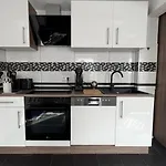 Moderne Maisonette-Wohnung Mit Garten In Niestetal Fuer 7 Personen heeft een ingerichte keuken, voorzien van een oven en een vaatwasser. Dit appartement is in de buurt van Sportplatz bushalte.